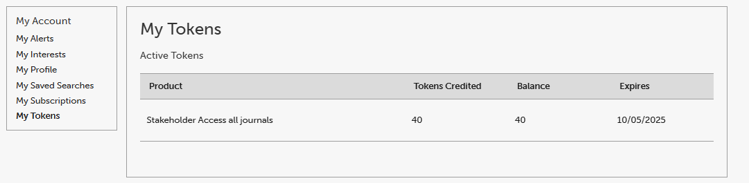 You can keep track of your allowance by logging into your profile at www.emerald.com/login and clicking on 'My tokens':